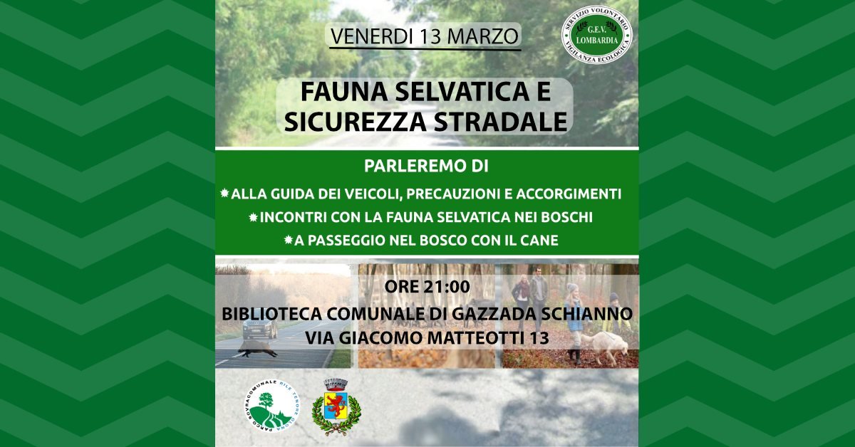 Molte delle nostre strade attraversano aree boschive, strade che gli animali selvatici utilizzano per i loro spostamenti, aumentando così i rischi per la sicurezza stradale. Numerosi incidenti si sono già verificati; per questo motivo, è fondamentale conoscere quali precauzioni adottare durante la guida e come comportarsi in caso di incidente con un animale selvatico. Questi saranno alcuni degli argomenti trattati nel corso. Inoltre, approfondiremo i comportamenti corretti da tenere quando ci si imbatte in animali selvatici durante una passeggiata nel bosco, sia da soli sia accompagnati dal proprio cane. L’ingresso è gratuito.