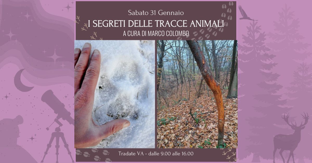 In questa giornata insieme a Marco Colombo (naturalista e fotografo) impareremo i segreti dell’arte del tracking, cercando di riconoscere i segni di passaggio e alimentazione degli animali del Parco Pineta, dapprima con una lezione teorica in aula, e poi con una facile escursione sul campo.