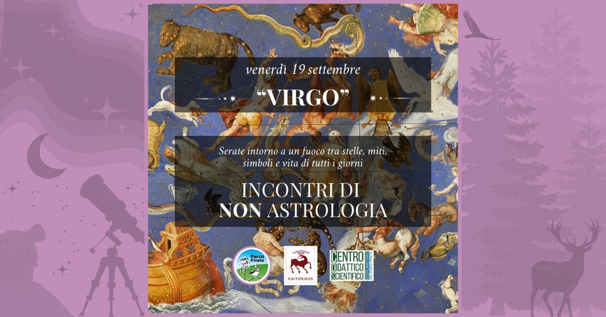 La quarta serata dedicata alla “Vergine” il 19 settembre alle soglie dell’equinozio di autunno prevede un momento introduttivo sul concetto di NON astrologia, cui seguirà la narrazione degli elementi mitici e simbolici legati a questo segno.