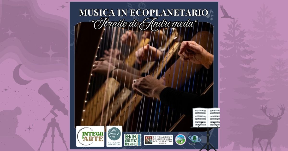 Una serata sospesa tra scienza e musica. Il mito di Andromeda ci farà viaggiare tra le costellazioni e le emozioni di un mito che non smette di fare battere i nostri cuori. Da vivere con gli occhi rivolti alle stelle e le orecchie avvolte dalle note delle arpe di Fabius Constable e dalla voce di Donatella Bortone.