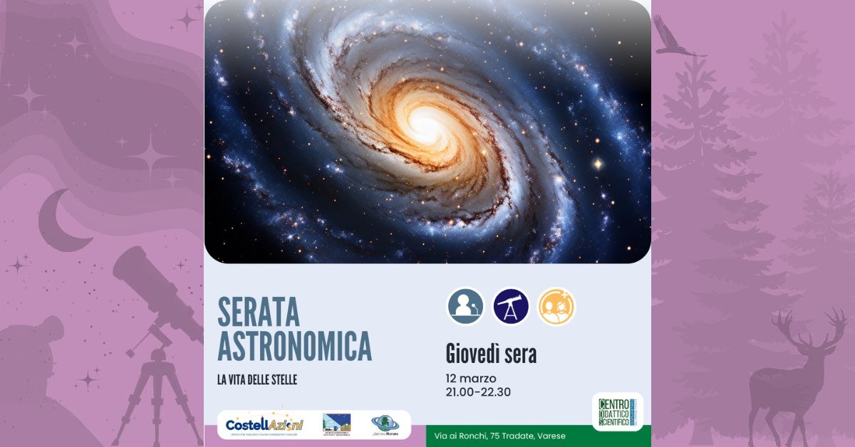 L’iniziativa, promossa dalla Cooperativa AstroNatura, rientra nel progetto “CostellAzioni” sostenuto dalla Fondazione Comunitaria del Varesotto, in collaborazione con la Società Astronomica “G.Schiaparelli” di Varese e il Parco Pineta di Appiano Gentile e Tradate.