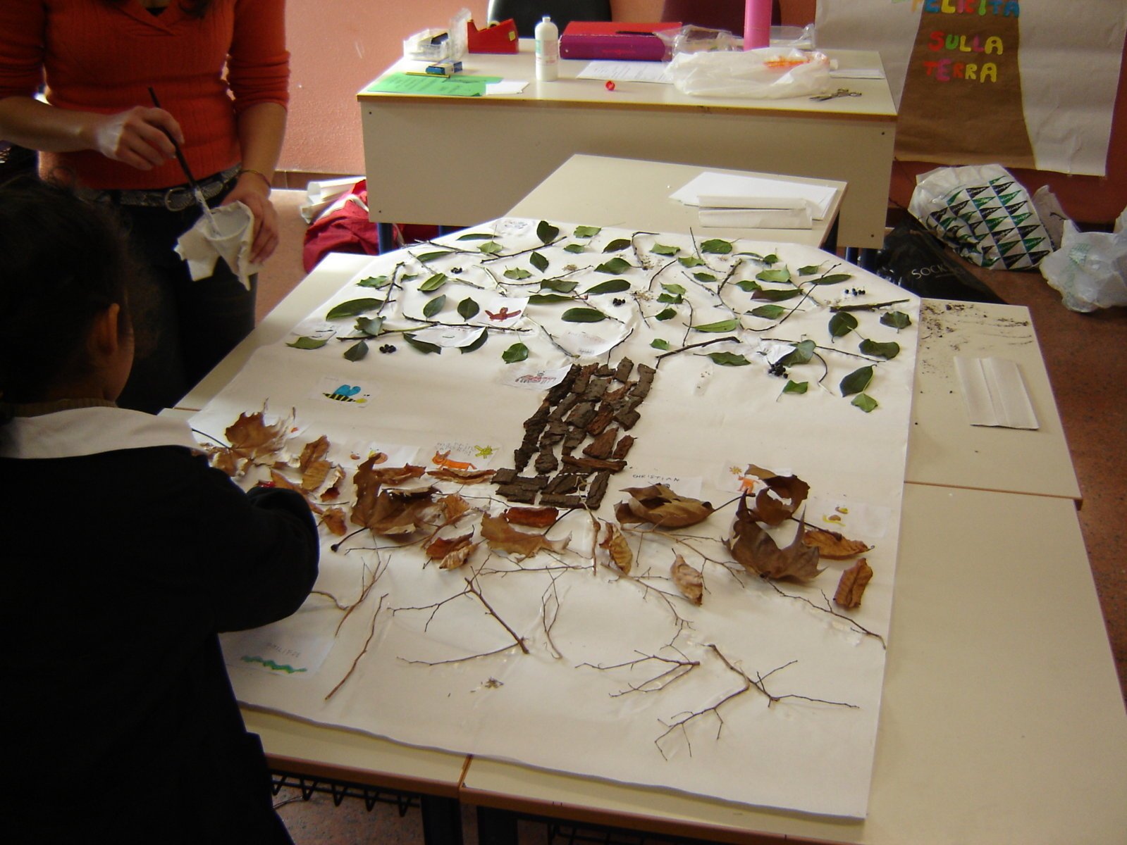 Scopriamo l’albero e i suoi abitanti con le classi del primo ciclo della scuola primaria. Insieme costruiamo questi bellissimi alberi fatti di rametti e foglie vere, dove troveranno una casa gli animali disegnati dai bambini. Alberi costruiti dai bambini Galleria immagini