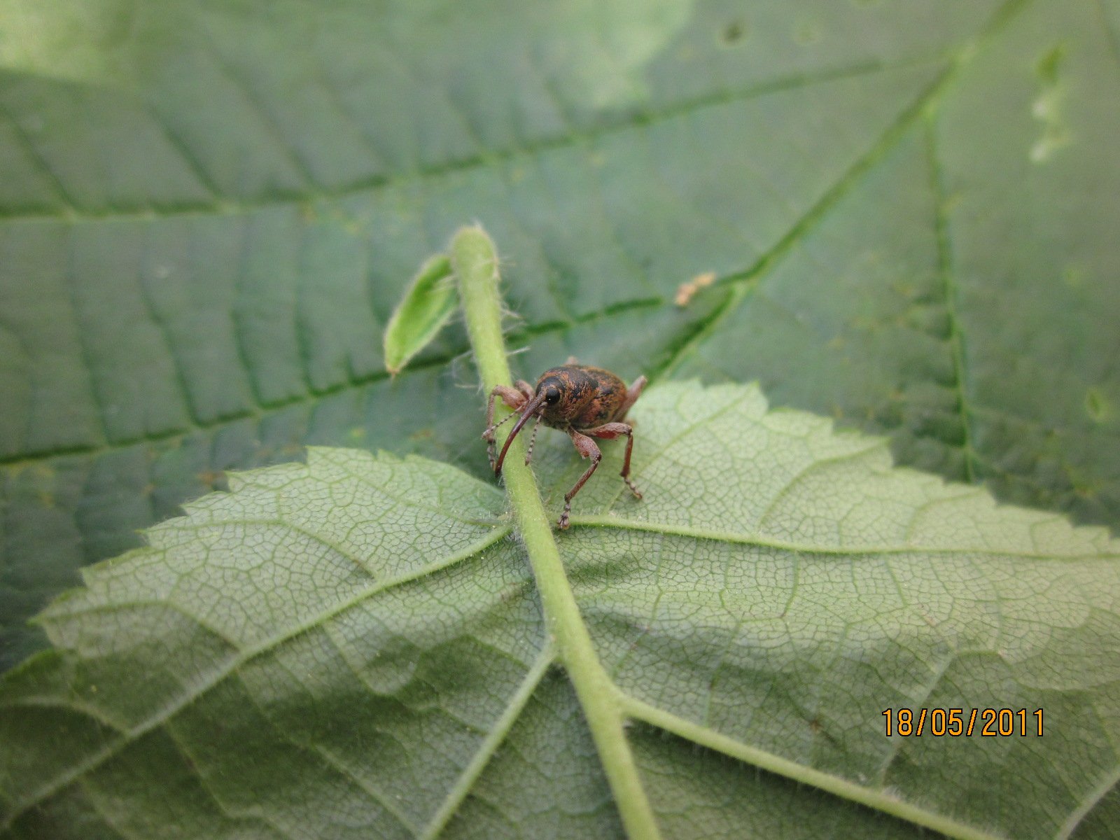 L'adulto mangia foglie di nocciolo, la larva mangia le nocciole.