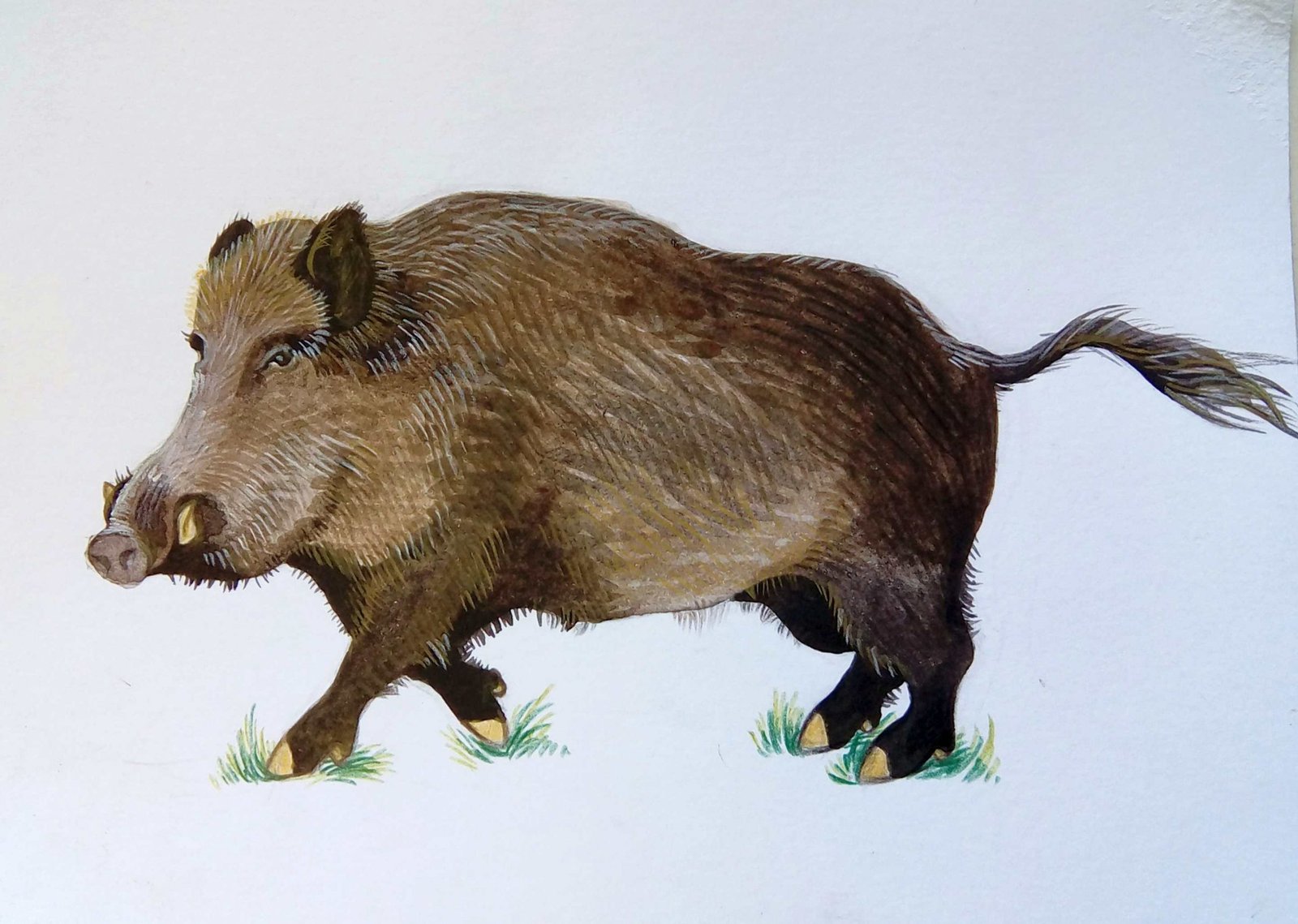 Il corpo è coperto di setole rigide, che sulla fronte e sulle spalle formano una specie di criniera che può essere sollevata per prendere un aspetto più minaccioso. La colorazione varia a seconda dell’età e della stagione (inverno o estate).