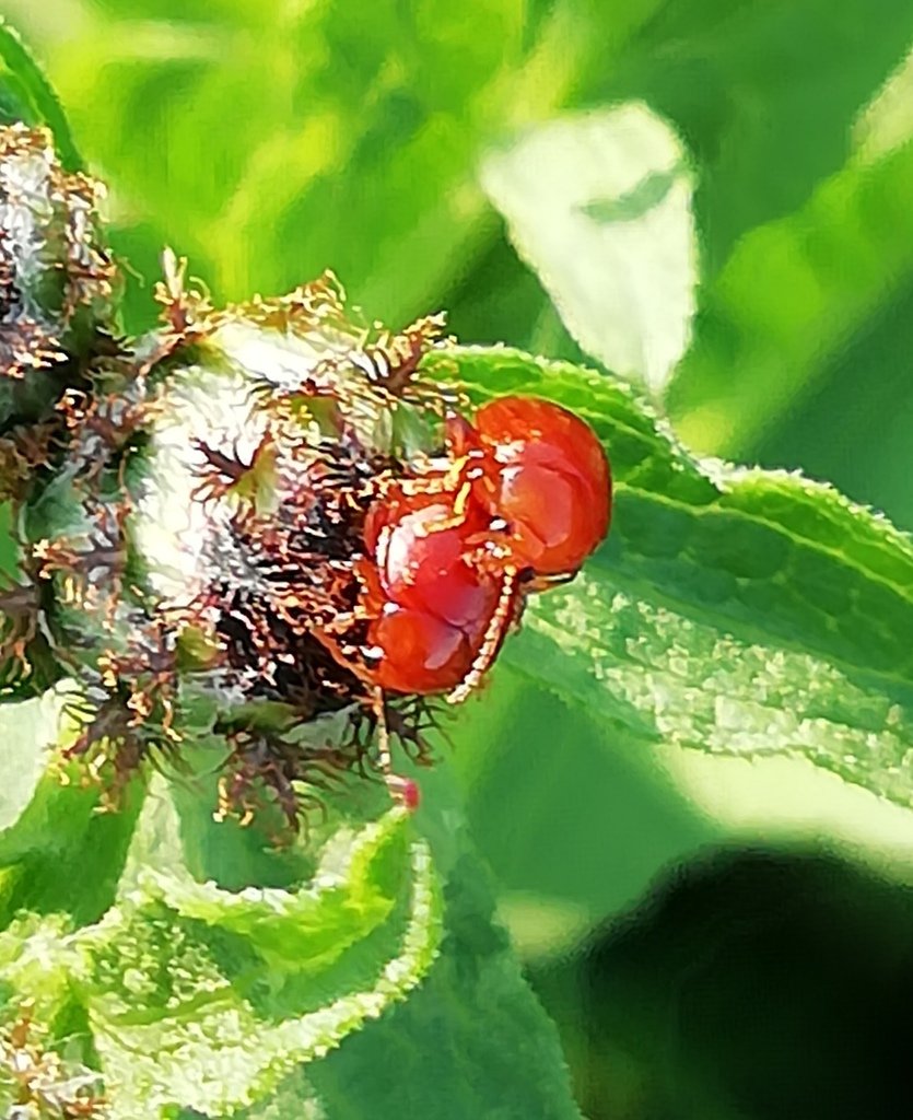 Il crisomelide italiano (Lachnaia italica), di forma leggermente allungata (lunga circa 1 cm) e di colore arancione con 6 piccoli punti neri sulle elitre. L’adulto mangia foglie di querce, rovi e rose.