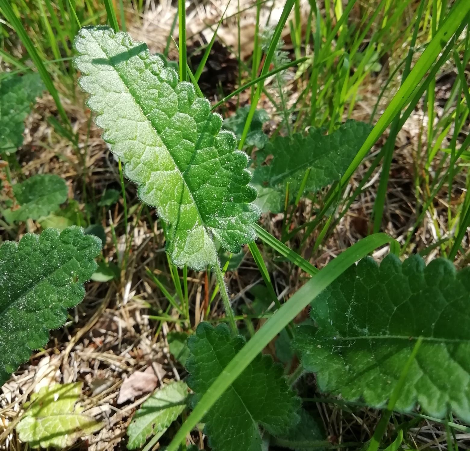 Le foglie sono leggermente allungate e hanno il margine fortemente crenato, cioè con denti arrotondati.