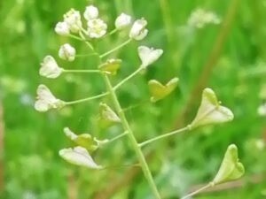 La borsa del pastore, o borsapastore comune, prende il nome dalla forma dei suoi frutti, piccole silique a forma di cuore, che ricordano antiche borse di tessuto o cuoio, chiuse da una stringa. I semi all’interno del frutto rappresenterebbero i soldi dentro la borsa.