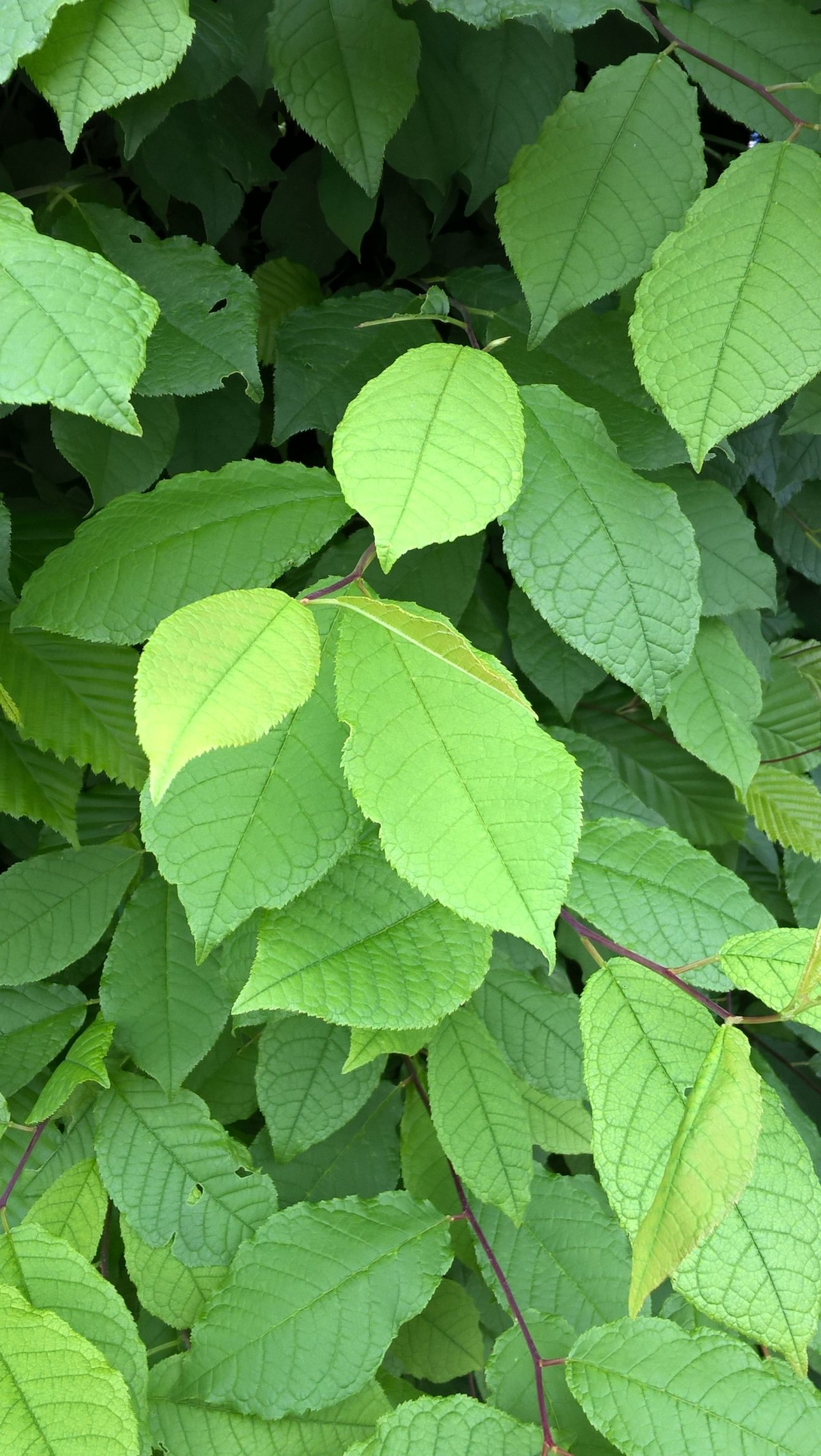 Le foglie assomigliano molto a quelle del ciliegio, ma sono più opache, con le nervature più evidenti e il picciolo più corto.