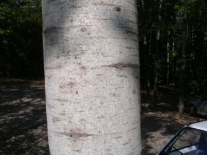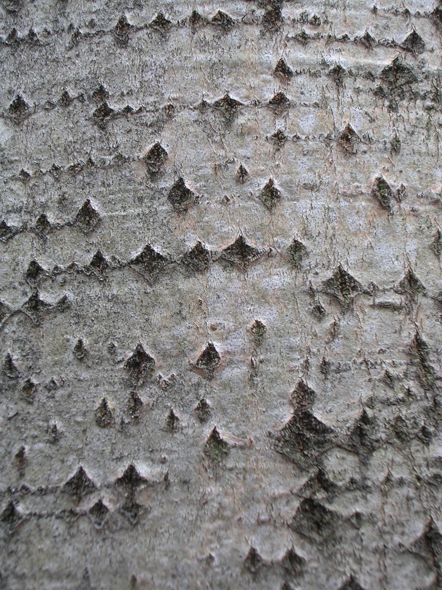 La corteccia è grigio argentea e si fessura in lenticelle.