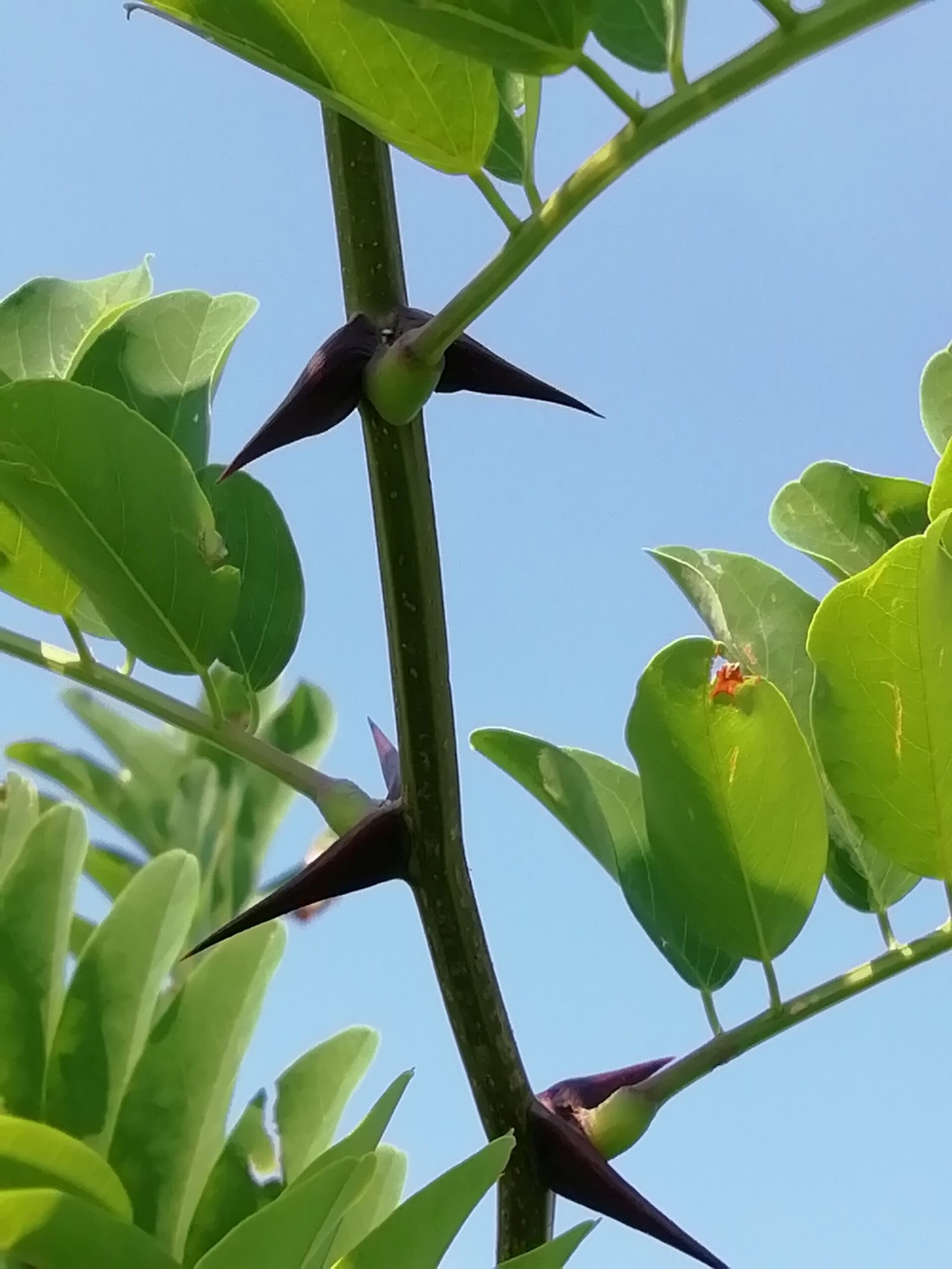 I rami giovani hanno grosse spine, che poi cadono quando la corteccia si inspessisce.