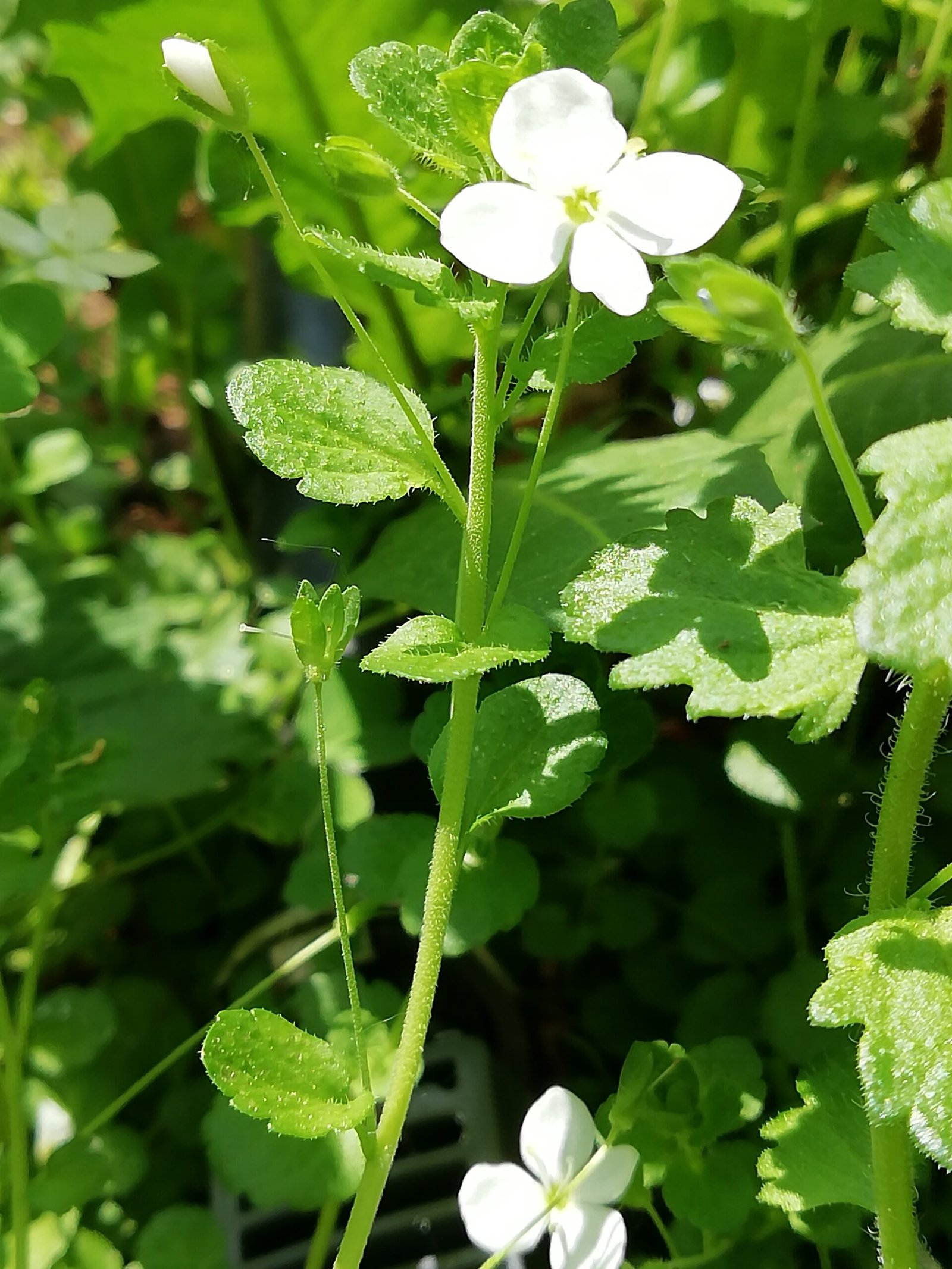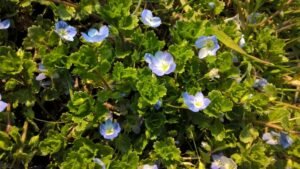 E’ una pianta alloctona e invasiva, dai fiori a 4 petali più pallidi e leggermente più grandi rispetto ad altre veroniche più comuni nel parco. Nel Parco la fioritura principale avviene in aprile, ma può estendersi fino a luglio.