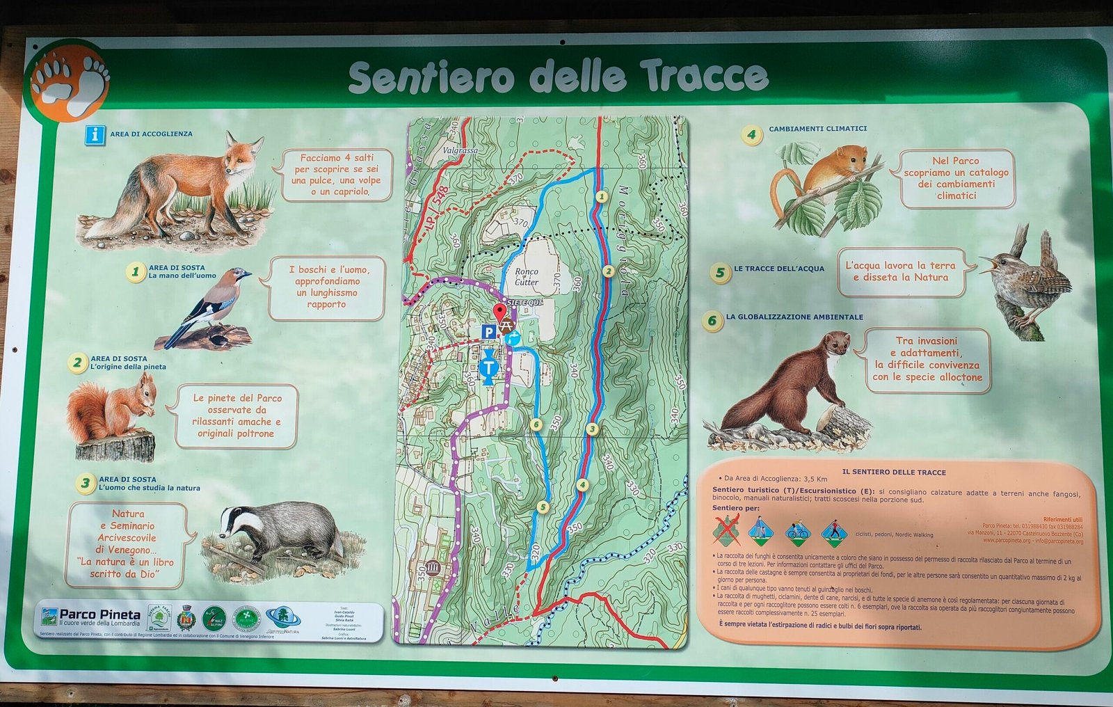 L’Area di sosta di Venegono Inferiore, si trova sul sentiero delle Tracce, lungo il confine del Parco Pineta. È raggiungibile dal centro abitato con una deviazione dal tratto in cui i sentieri LP e 548 si sovrappongono.