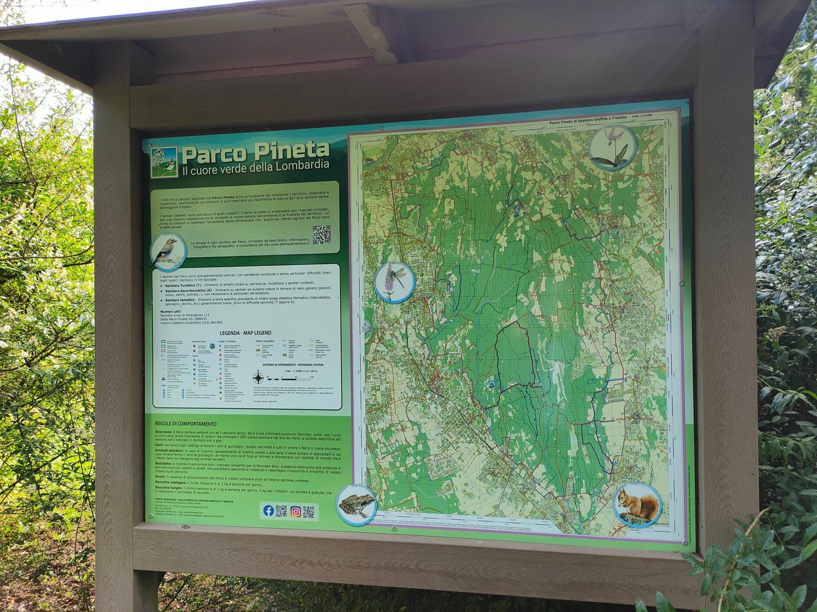 Per noi ci sono tavoli con panche, ma già all’ingresso un pannello illustra i rifugi costruiti e distribuiti nell’area per diverse specie di animali.