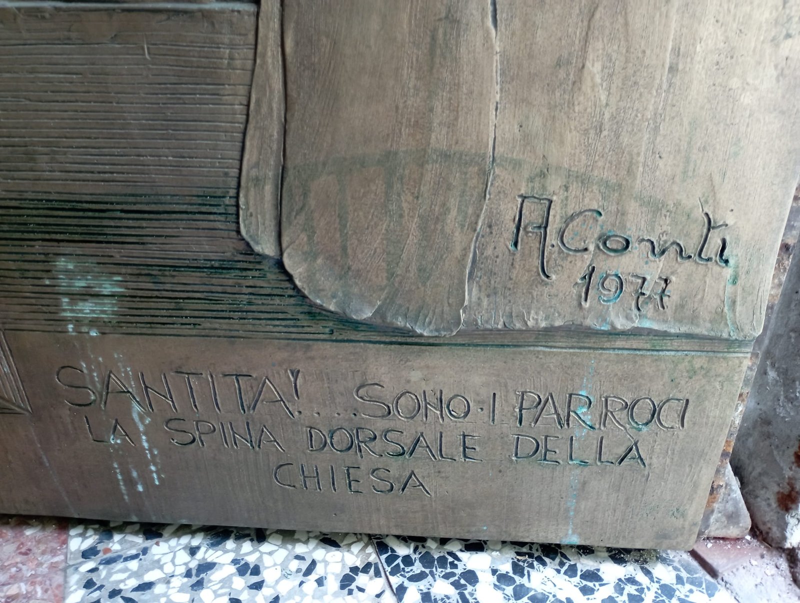 Conti ha anche incastonato sopra il portale un arco in bronzo raffigurante il beato don Luigi Monza, che nel 1938 costruì poco più in alto rispetto alla chiesetta quella che nel 1946 divenne la prima sede de “La Nostra Famiglia”, opera dedicata alla riabilitazione di minori disabili. La prima direttrice, Clara Cucchi, alla sua morte è stata sepolta nella chiesetta al Lazzaretto.