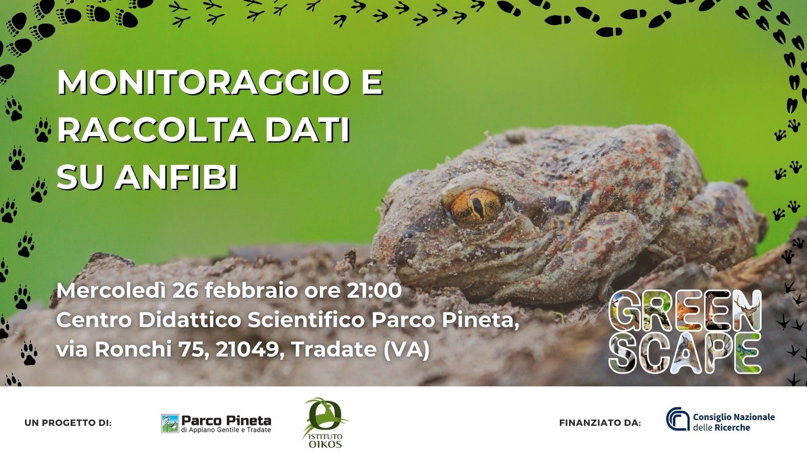 L’incontro formativo “Monitoraggio e raccolta dati su anfibi” si terrà mercoledì 26 febbraio alle ore 21:00, con la possibilità di partecipare sia online che in presenza presso il Centro Didattico Scientifico del Parco Pineta, in via ai Ronchi 75, a Tradate.