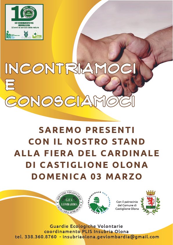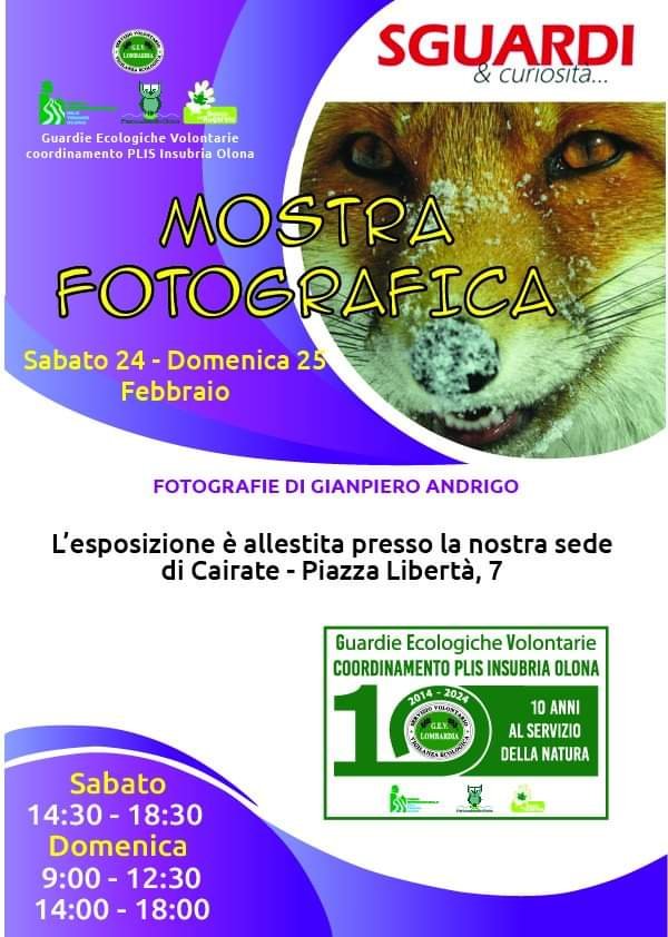 Proseguono gli eventi per il decennale delle GEV PLIS INSUBRIA OLONA, sabato 24 e domenica 25 febbraio con la mostra fotografica “Sguardi e Curiosità” nella sede in piazza Libertà a Cairate. Mentre domenica 3 marzo in occasione della tradizionale Fiera del Cardinale di Castiglione Olona saremo presenti con il consueto stand.