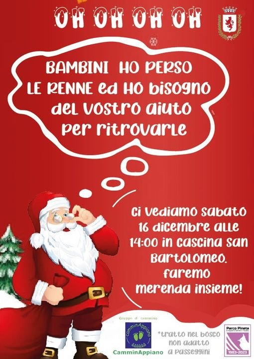 Al Parco arrivano tante richieste. ‘Non trovo più il gatto’ ‘Ho smarrito il cane’ ‘Mi sono scappate le renne’ Come le renne! Mi scusi ma lei chi è? ‘Santa Klaus’ Ops pardon Così è da un po’ che chiediamo in giro: ‘Avete visto delle renne?’ Sentiamo di cervi, cinghiali, caprioli, addirittura qualche lupo, ma renne […]