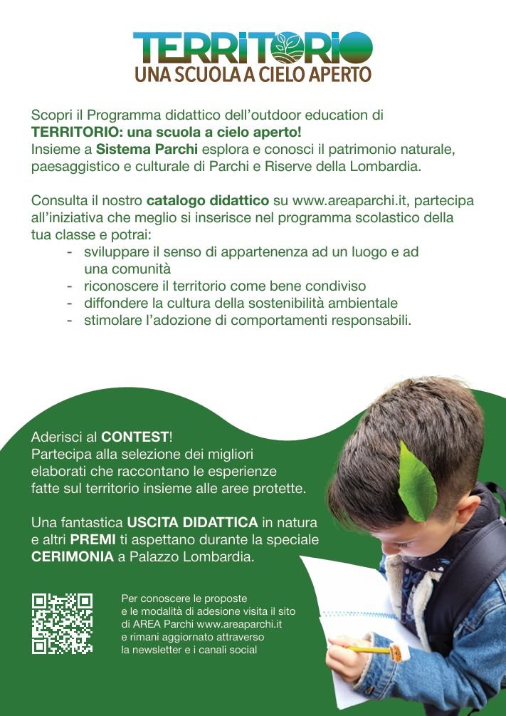 TERRITORIO: una scuola a cielo aperto è un progetto di Regione Lombardia , con la collaborazione di AREA Parchi e delle aree protette per coinvolgere le scuole di ogni ordine e grado in iniziative rivolte alla conoscenza del territorio compreso nei parchi regionali e nei PLIS.