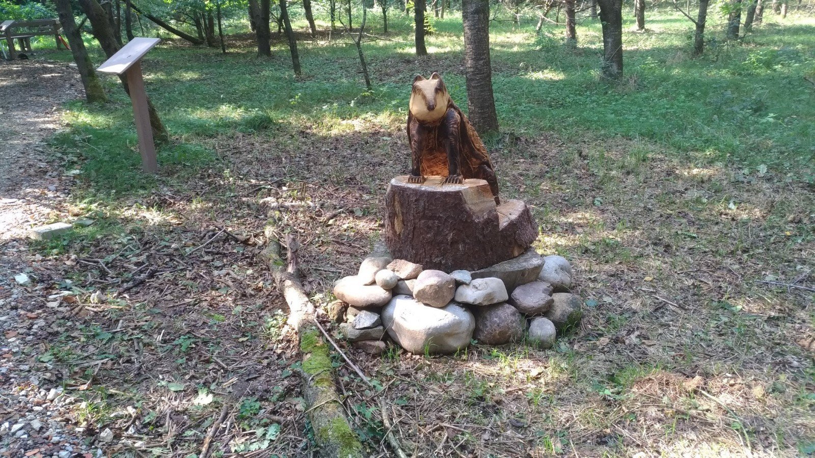 Superata la parrocchiale di S. Martino il sentiero, assieme all’841 ed al 846, scende nella valle tenendo sempre la sinistra per raggiungere un’area oggetto di riqualificazione forestale e, in prossimità di un piccolo guado, il depuratore tradizionale del paese (lasciamo il sentiero 841). Appena superato il piccolo corso d’acqua raggiunge l’impianto di Fitodepurazione e l’area di sosta del sentiero della Salamandra, arricchita con giochi per bambini e statue in legno.