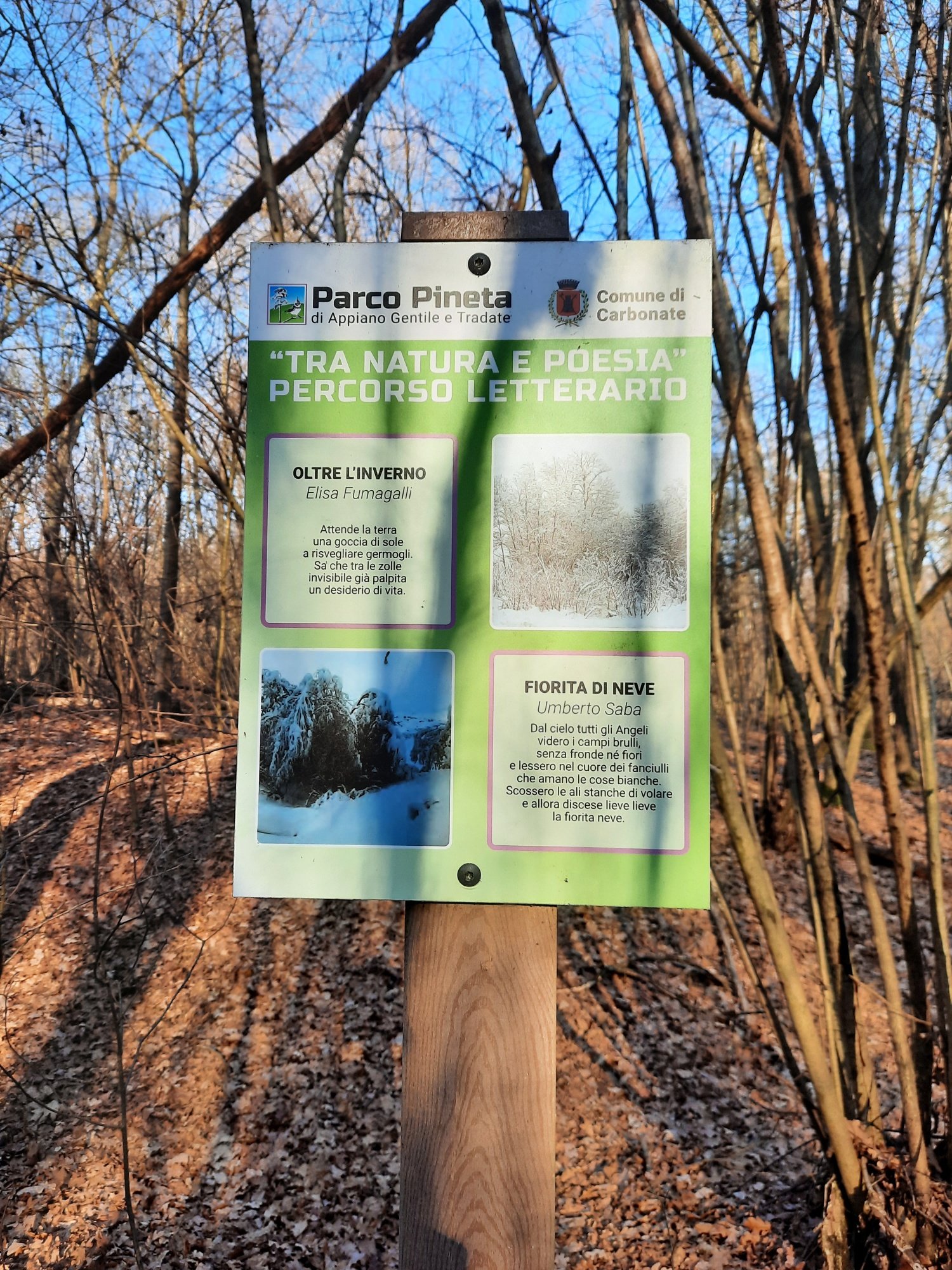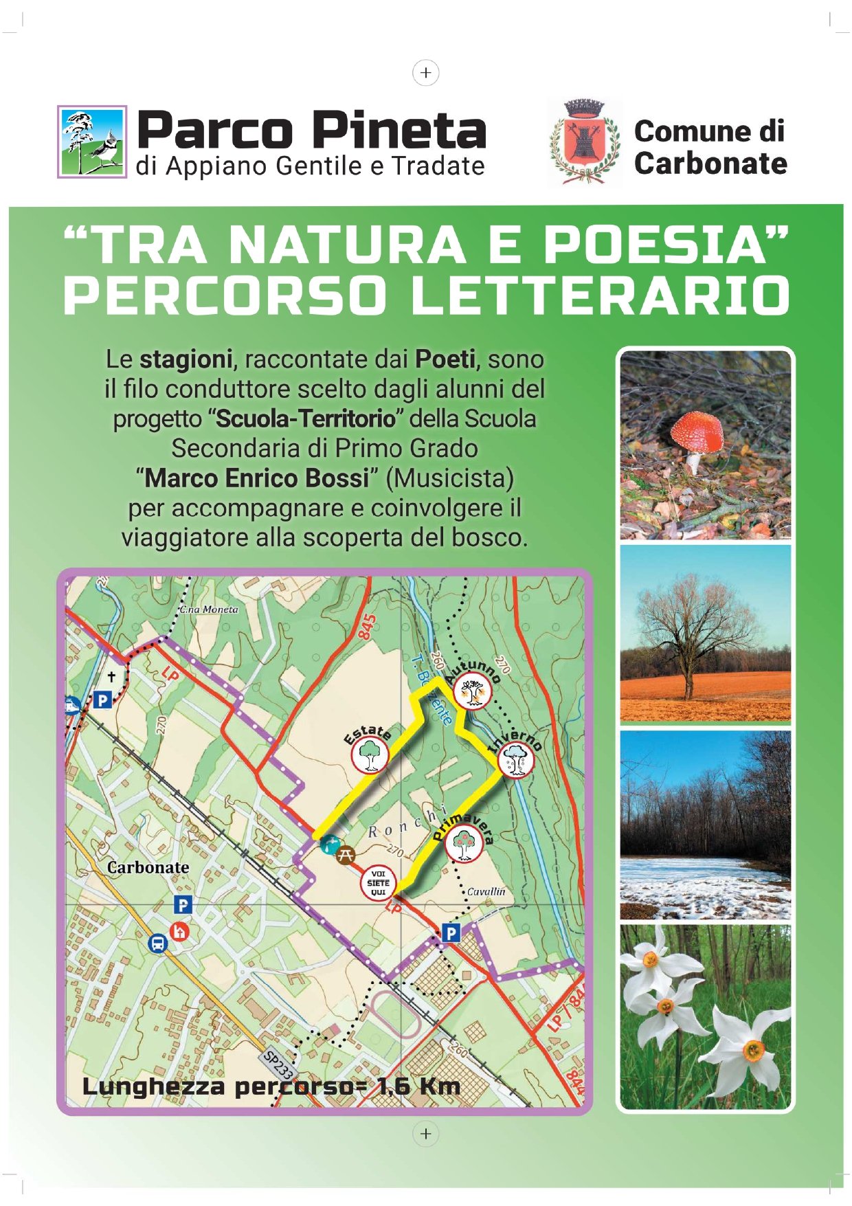 Le stagioni, raccontate dai Poeti, sono il filo conduttore scelto dagli alunni del progetto “Scuola-Territorio” della Scuola Secondaria di Primo Grado “Marco Enrico Bossi” (Musicista) per accompagnare e coinvolgere il viaggiatore alla scoperta del bosco: arte e poesia ci accompagnano attraverso in un breve viaggio tra natura, ambienti, paesaggi e stagioni tipici del territorio del Parco Pineta.