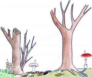 (3) funghi simbionti : instaurano uno scambio di sostanze nutritive tra il fungo, che fornisce acqua, e le piante, che forniscono zuccheri, attraverso un collegamento tra micelio e radice, con un vantaggio reciproco per entrambi gli organismi.