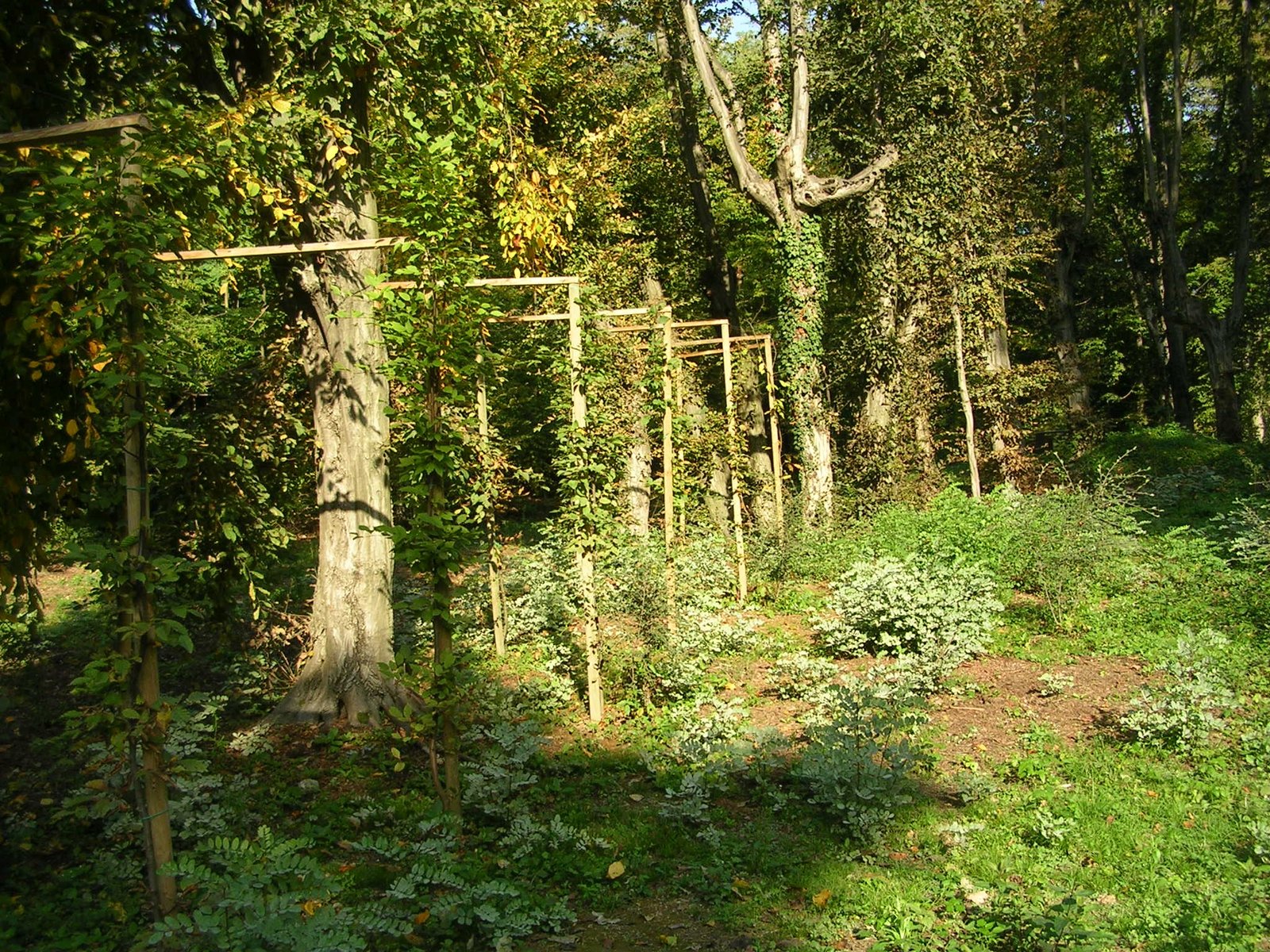 La parte interna del pergolato veniva tenuta a prato rasato, ad eccezione di una o più piante ad alto fusto e altri arbusti tipicamente selezionati perchè produttrici di bacche attraenti: ciliegi, sorbi degli uccellatori, pruni, rose canine.